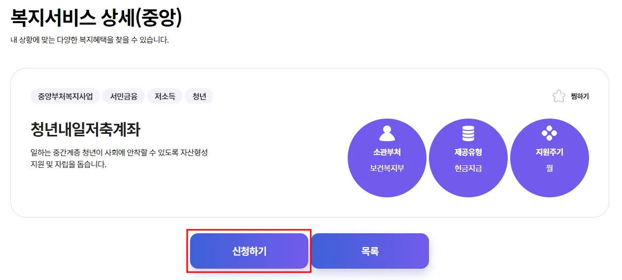 - 온라인 : 복지로 사이트에 접속해 로그인하시고 청년내일도약계좌 검색하셔서 청년내일저축계좌 항목에 들어가 신청하기 버튼 클릭하신 후 나오는 항목을 작성해 주시면 됩니다.